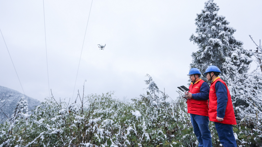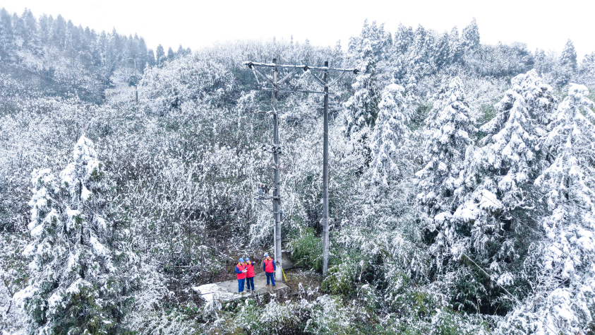 26日当天,在邻水县海拔1200多米的椿木镇椿木坪村飘起了雪花,该公司合流供电所巡线人员主动出击,对供电线路开展巡视。巡线人员仔细查看杆塔的基础、拉线、绝缘子、导线及其他附件的覆冰情况,并作好详细记录,对影响线路运行的缺陷及时处理。