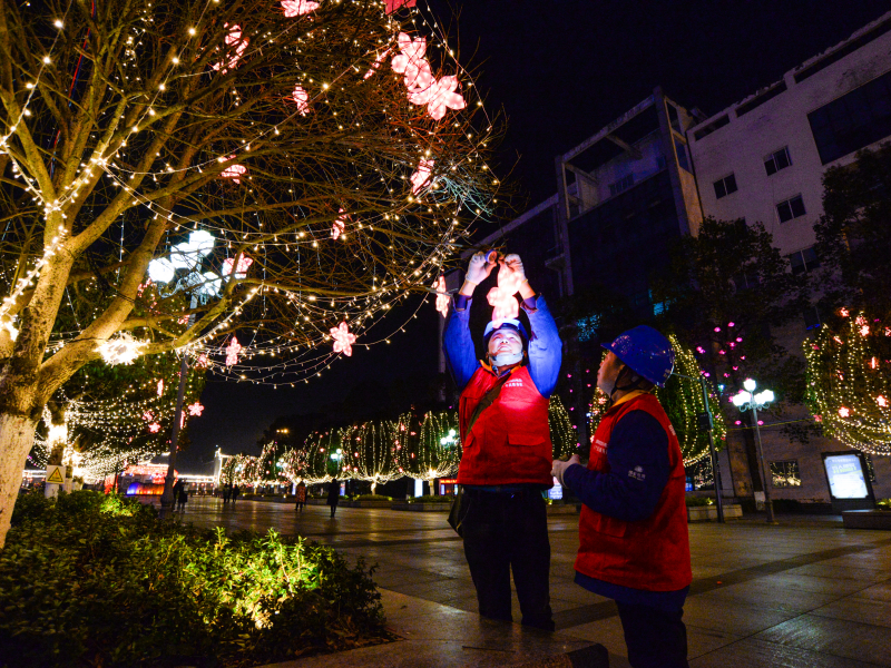 国网邻水供电有限公司工作人员检查春节灯会用电线路情况