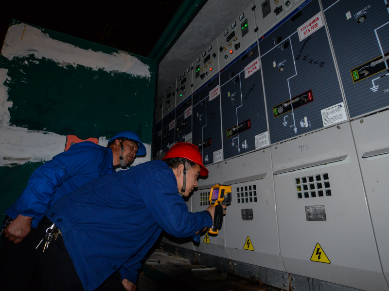 国网邻水供电有限公司工作人员21时对10千伏水西线开关站进行检查,并开展红外测温,保障用电高峰时段可靠供电