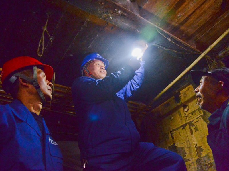国网邻水供电有限公司供电所工作人员帮助村民更换家里损坏的灯泡