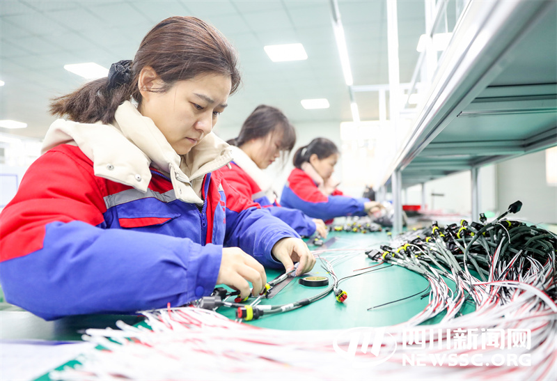 | 2月5日,四川省广安华蓥市华蓥山经开区大千电子科技有限公司线束车间的员工,在生产流水线上紧张作业。 |