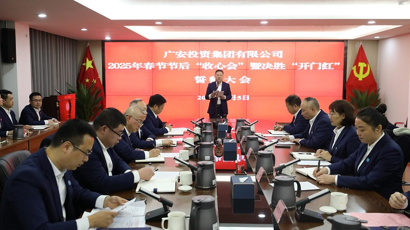 2月5日,广安投资集团召开2025年春节节后“收心会”暨决胜“开门红”誓师大会,盘点工作,部署任务,凝心聚力开启全年工作。集团领导班子带领各子企业班子成员、各部门负责人分别上台表态并进行“开门红”宣誓。集团党委副书记、总经理古小云主持会议,党委书记、董事长杨远鹏出席会议并讲话。