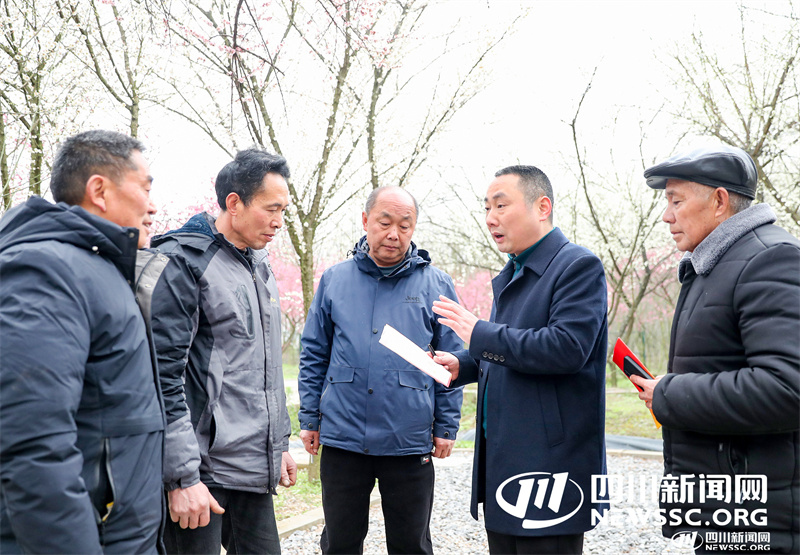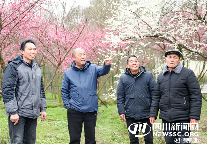 | 2月11日, 四川省华蓥市禄市镇凉水井村生态园的业主王晓龙(左二),向本村“法律明白人”许永平(左一)等人介绍相关纠纷调解后产业正常发展情况。 |