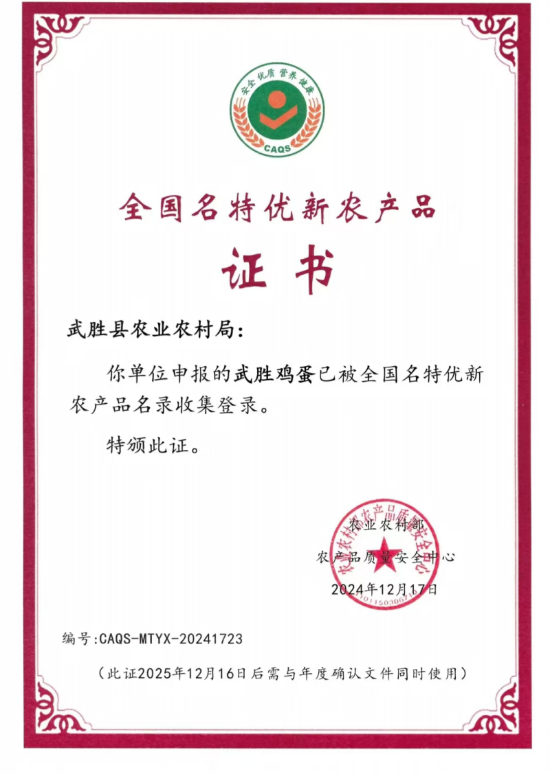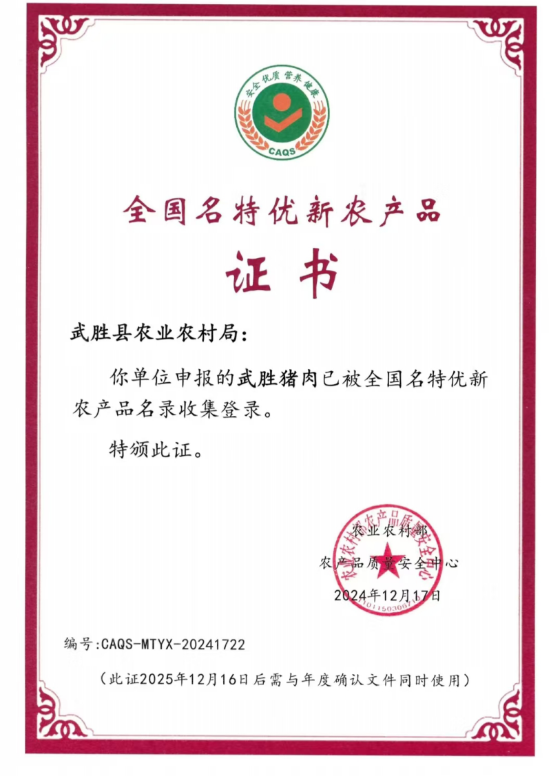 2月19日,记者从广安市农业农村局获悉,近期,武胜猪肉、武胜鸡蛋成功入选2024年第三批全国名特优新农产品名录,这也是武胜特色农产品首次进入该名录,武胜猪肉和武胜鸡蛋实现了从“地方农产品”蜕变为“国字号”名特优新农产品。