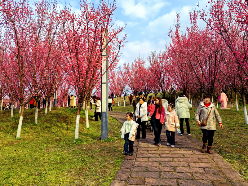 早春时节,气温不断回升,各种鲜花竞相开放,生机勃勃,吸引游人观赏。在四川省广安市广安区五一公园 ,近100亩盛开的梅花也正在迎接络绎不绝的爱花之人。