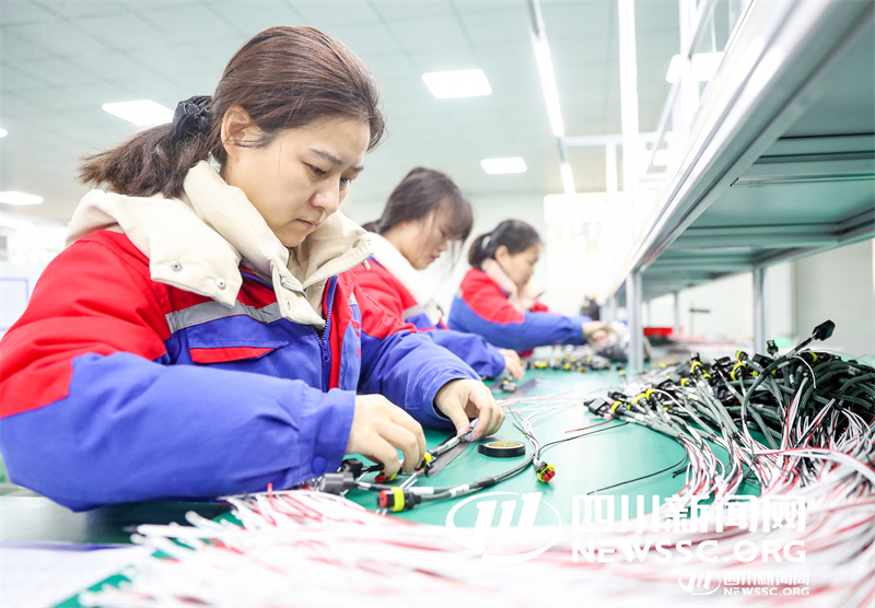 | 在四川省华蓥市民营企业发展平台华蓥山经开区,华蓥山领创电子有限公司智能车间的员工在生产流水线上紧张作业。 |