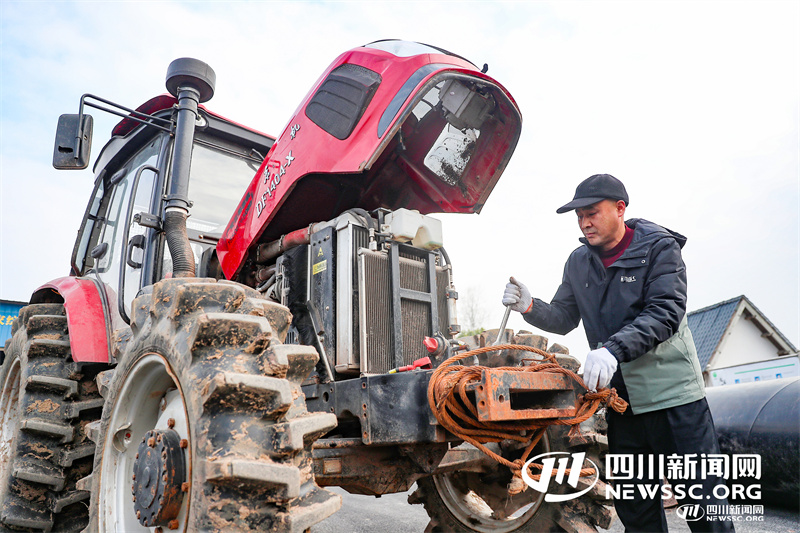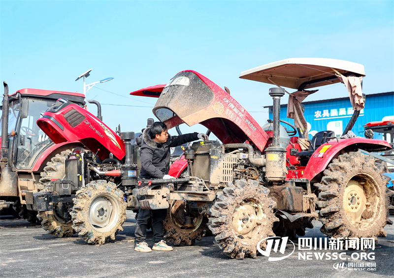正值春耕备耕时节,四川省华蓥市永兴镇马架坪村农机服务中心的农机手,或忙着维修俗称“铁牛”的旋耕机、播种机和收割机等农机具,或奔忙田间为农户耕整用于播种育苗的农田,助力春耕生产。