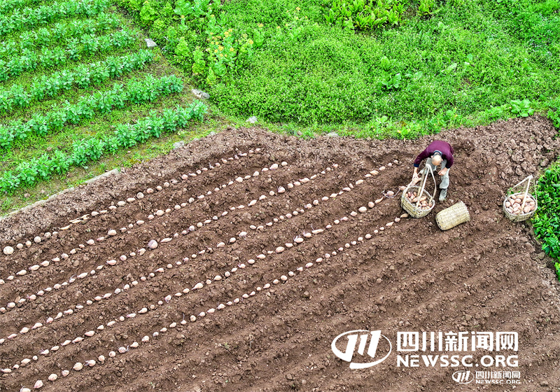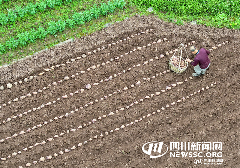 | 2月26日,四川省华蓥市华龙街道沙坝村一村民正在农田播种红薯。 |