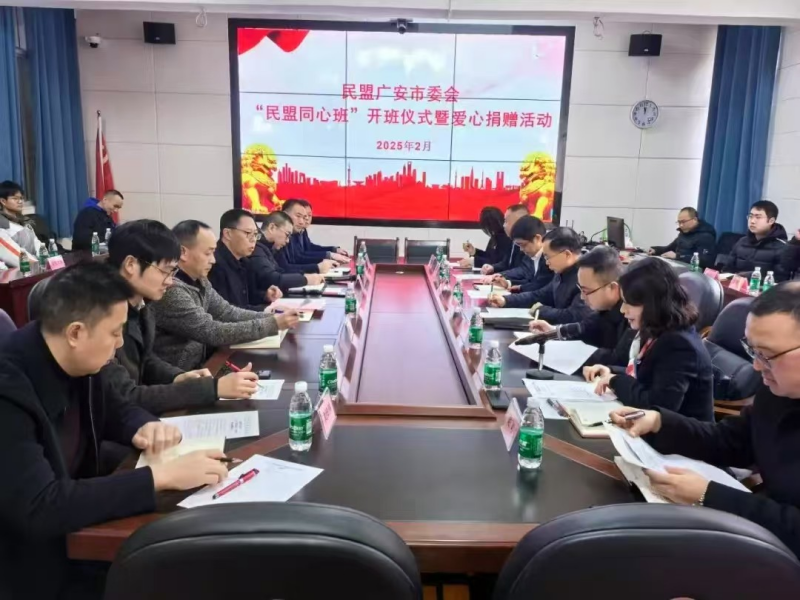 为响应民盟中央农村教育“烛光行动”号召,深入推进广安市统一战线“1+1”实践创新工作,促进校际间教育教学交流与合作,2月25日下午,民盟广安市委会在广安三中举行“民盟同心班”开班仪式暨爱心捐赠活动。广安市人大常委会副主任、民盟市委会主委贺宗飞出席活动并讲话。市委统战部副部长、市工商联党组书记朱大均,民盟市委会副主委、市营商环境局局长殷云,广安经开区管委会三级调研员何华艾,市纪委监委驻广安友谊中学纪检监察组组长、广安友谊中学党委副书记、纪委书记赵可等应邀出席活动。开班仪式由市教育体育局党组成员、副局长谭晓花主持。