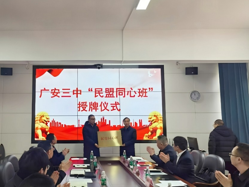 开班仪式上,贺宗飞代表民盟市委会向广安三中授牌“民盟同心班”;广安友谊中学对口帮扶的盟员教师代表与广安三中“民盟同心班”班主任签订“一对一”帮扶协议;殷云代表民盟市委会向“民盟同心班”捐赠文体用品;广安佳霖建工集团董事长、民盟市委会企业家联谊会副会长、社会服务部副部长邹佳霖向“民盟同心班”捐赠奖学基金15000元。