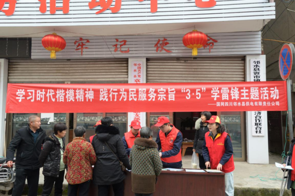 3月3日,国网邻水县供电有限责任公司组织开展“学习时代楷模精神 践行为民服务宗旨‘3·5’学雷锋”主题实践活动,以实际行动弘扬雷锋精神,以优质、贴心的服务当好电力先行官,架起党群连心桥。