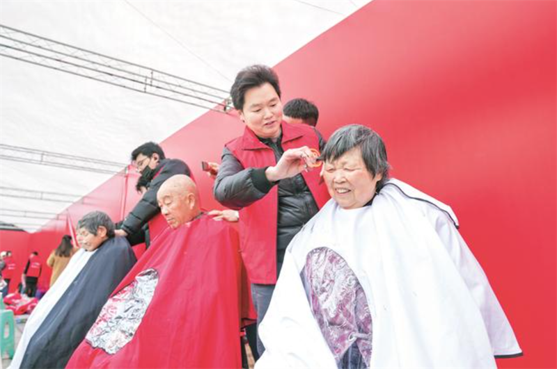 | 3月4日,广安市一批学雷锋志愿者在思源广场开展爱心义剪活动,为老年人提供免费剪发服务,以实际行动践行新时代雷锋精神。本报记者 范聪 摄 |