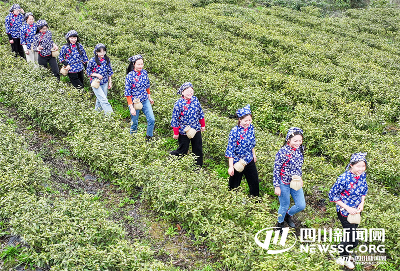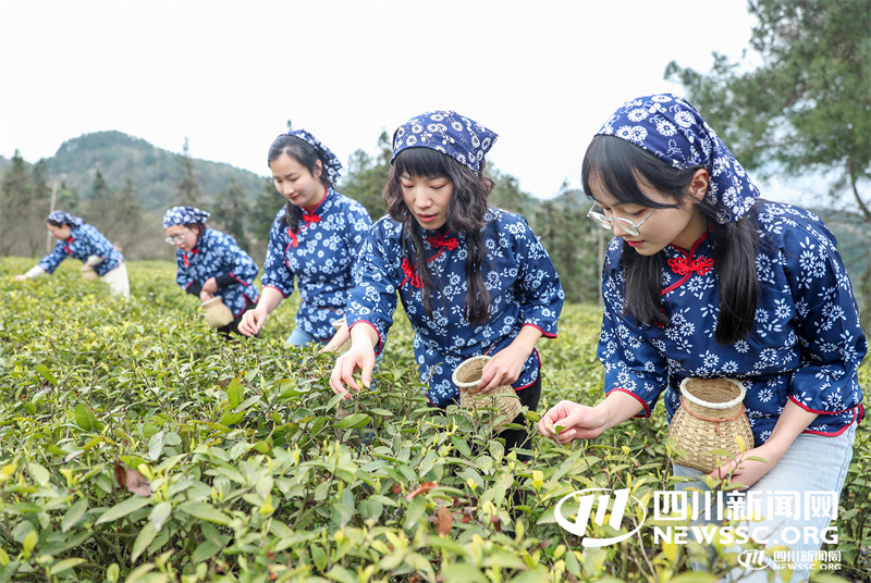 3月6日,四川省华蓥市融媒体中心女记者在华蓥山区的龙滩镇水源村体验茶叶采摘,感受茶文化的魅力,在开心中迎接“三八”国际妇女节来临。