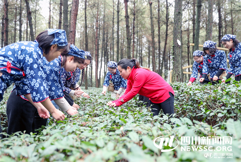 四川华蓥:记者体验采茶 喜迎“三八”国际妇女节