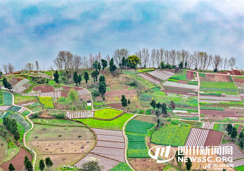 3月7日,在四川省广安华蓥市明月镇竹河村代家嘴,水天一色的渠江把由滩涂改造的蔬菜基地点缀得生机盎然。