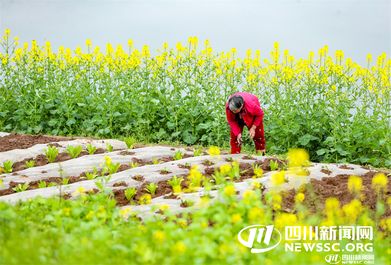 阳春三月,经过水环境治理和保护后的渠江四川省广安段,在沿岸盛开的油菜花和泛绿的草木、农作物装点下,显得格外美丽迷人。当地农民伴着花香奔忙田间地头,整理农田、储备肥料,播种育苗,一派忙碌景象。