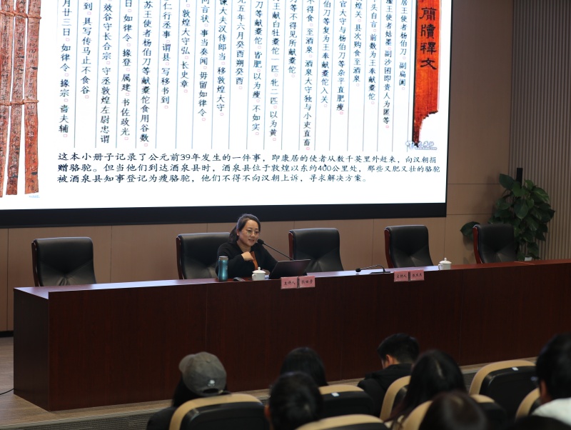张田芳在讲座中表示,文化因包容而兴,因开放而盛,敦煌仿佛一个巨大磁场,吸引着各种文明,是了解中古时期中外文化交流的重要窗口。敦煌文化中的许多元素,如壁画、雕塑和文献,不仅展示了古代人们的生活和思想,还蕴含着丰富的精神内涵和智慧。