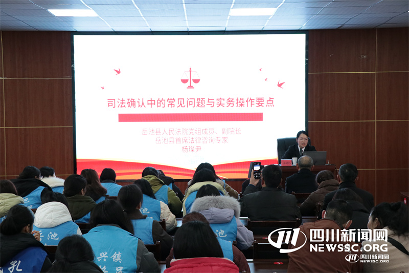“司法确认是指行政机关、仲裁机构、人民调解组织或其他具有调解职能的组织调解达成的,具有民事合同性质的协议,当事人可向有权管辖的人民法院申请确认其法律效力。经审查,若协议符合法律规定,法院将作出确认裁定,赋予其强制执行力”,2025年3月6日,在四川省岳池县基层“双员”调解能力提升培训班上,岳池县人民法院副院长、首席法律咨询专家杨璨尹这样开讲。