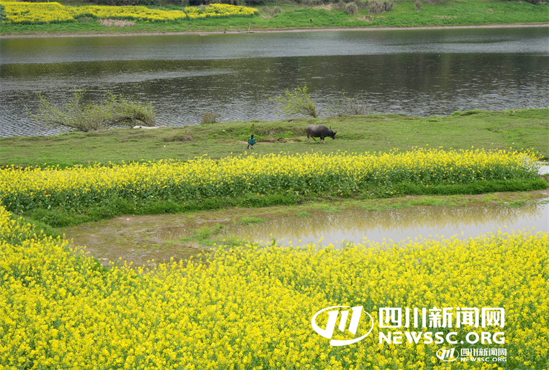 | 3月16日,在四川省华蓥市明月镇竹河村渠江岸边的滩涂地上,一位小朋友在油菜花盛开的岸边放牛,形成了一幅人与自然和谐相处的生动画面。 |